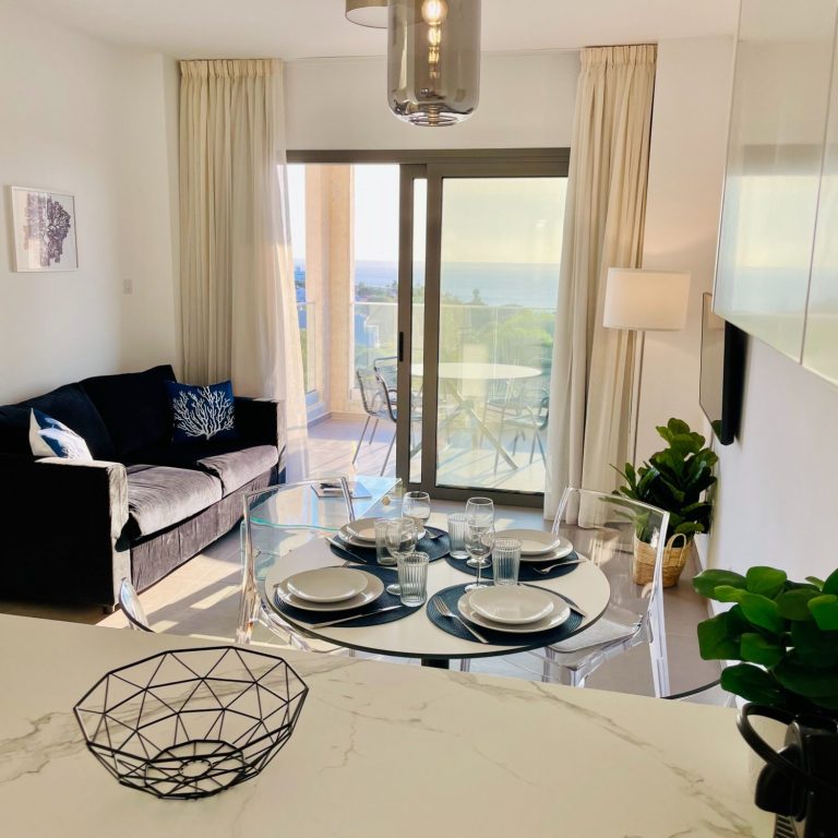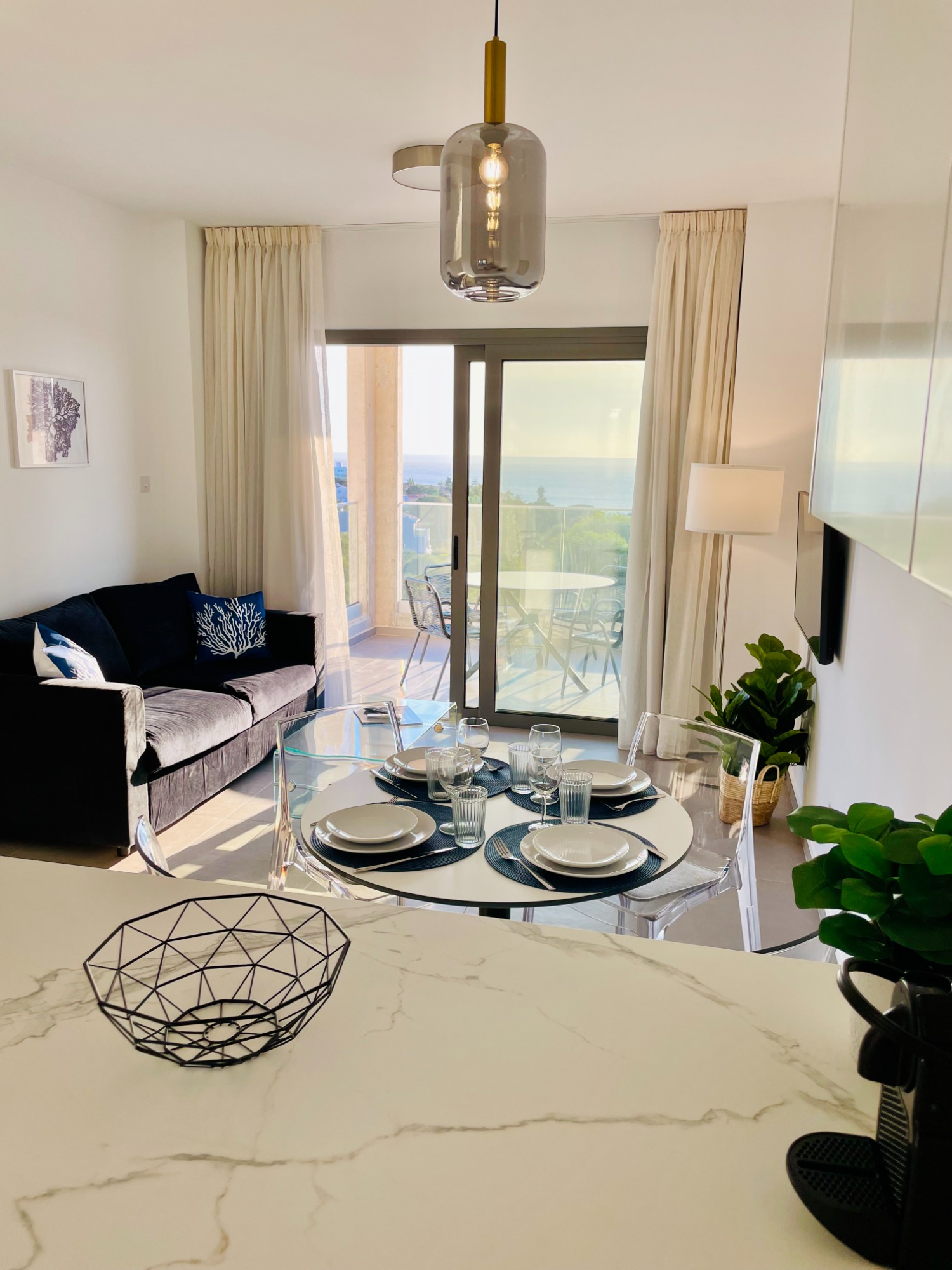 Welcome to our modern and luxurious one-bedroom apartment in the heart of Coral Bay, Cyprus! From every room, as well as the shaded veranda, you’ll be captivated by breathtaking views of the crystal-clear Mediterranean Sea framed by lush pine trees.