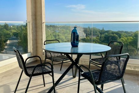 The view from our apartment is truly breathtaking. From every room, you’ll be captivated by panoramic vistas of lush pine trees stretching toward the turquoise waters of the Mediterranean Sea.