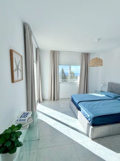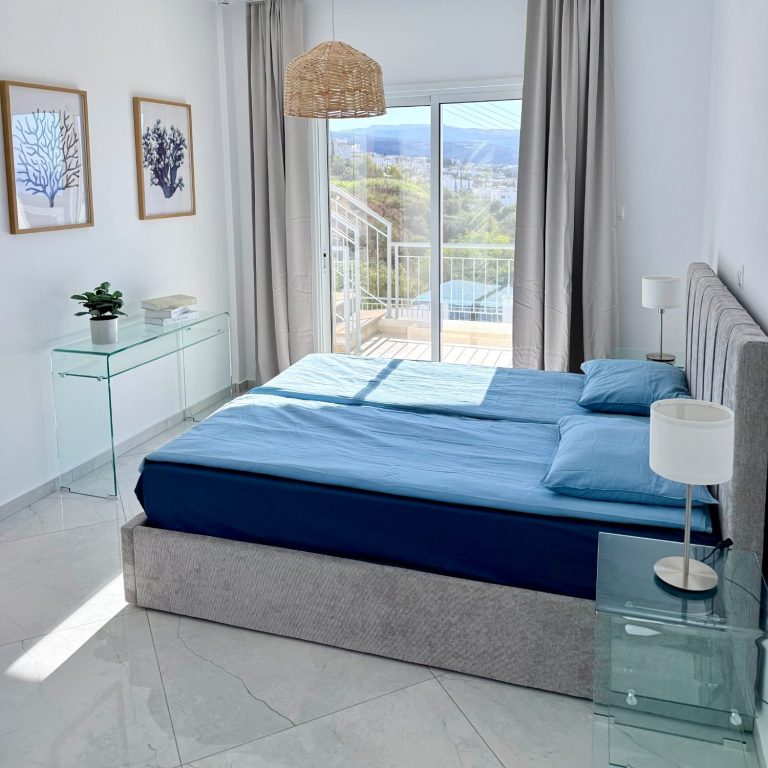 Our luxurious 4-bedroom villa sleeps up to eight guests in air-conditioned comfort. Two rooms offer stunning sea views, two overlook the mountains. With three en suite bathrooms and a guest toilet, it’s the perfect blend of privacy and elegance.