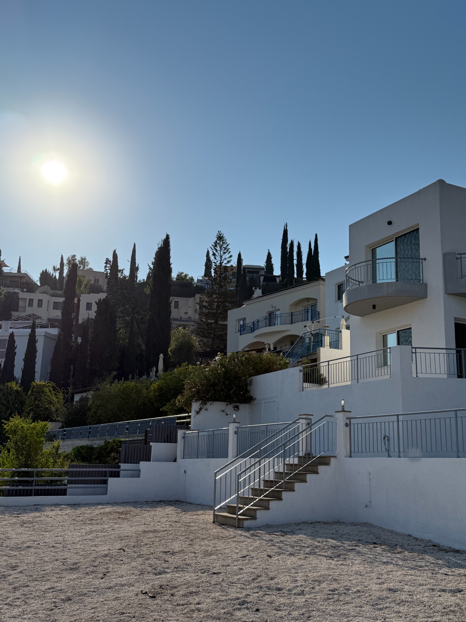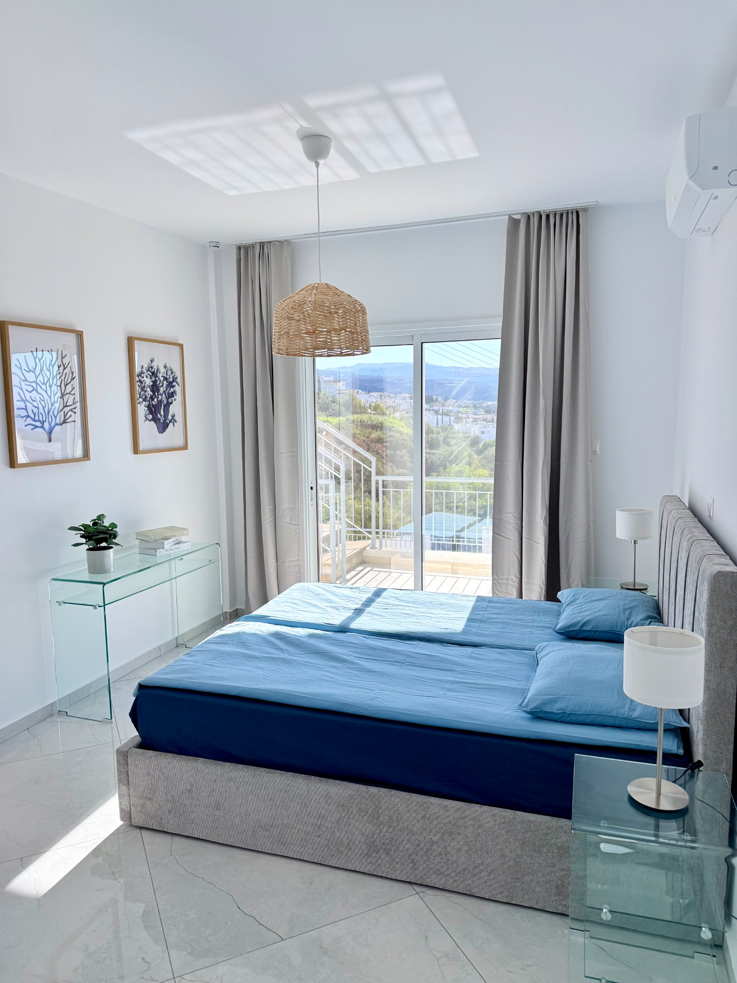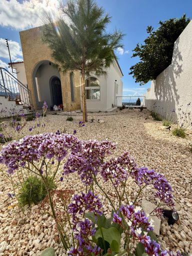 From its hilltop setting, enjoy 180° panoramic vistas over Coral Bay and the shimmering Mediterranean, framed by olive trees, cypresses, and endless blue skies. As the light shifts throughout the day, the view transforms into a living painting — uniquely Cypriot.