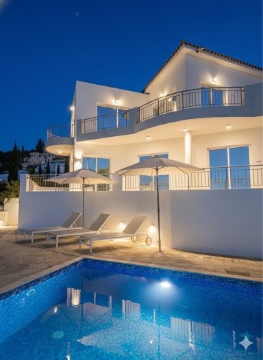 Picture this: the soft glow of sunset reflecting off your private pool, the scent of olive trees in the warm evening air, and the Mediterranean stretching endlessly before you. From your hilltop terrace, savor a glass of fine Cypriot wine as the sun sinks into the sea, painting the horizon in shades of gold, rose, and deep blue. At Coral Bay Hills, every evening becomes a front-row seat to nature’s most beautiful performance.